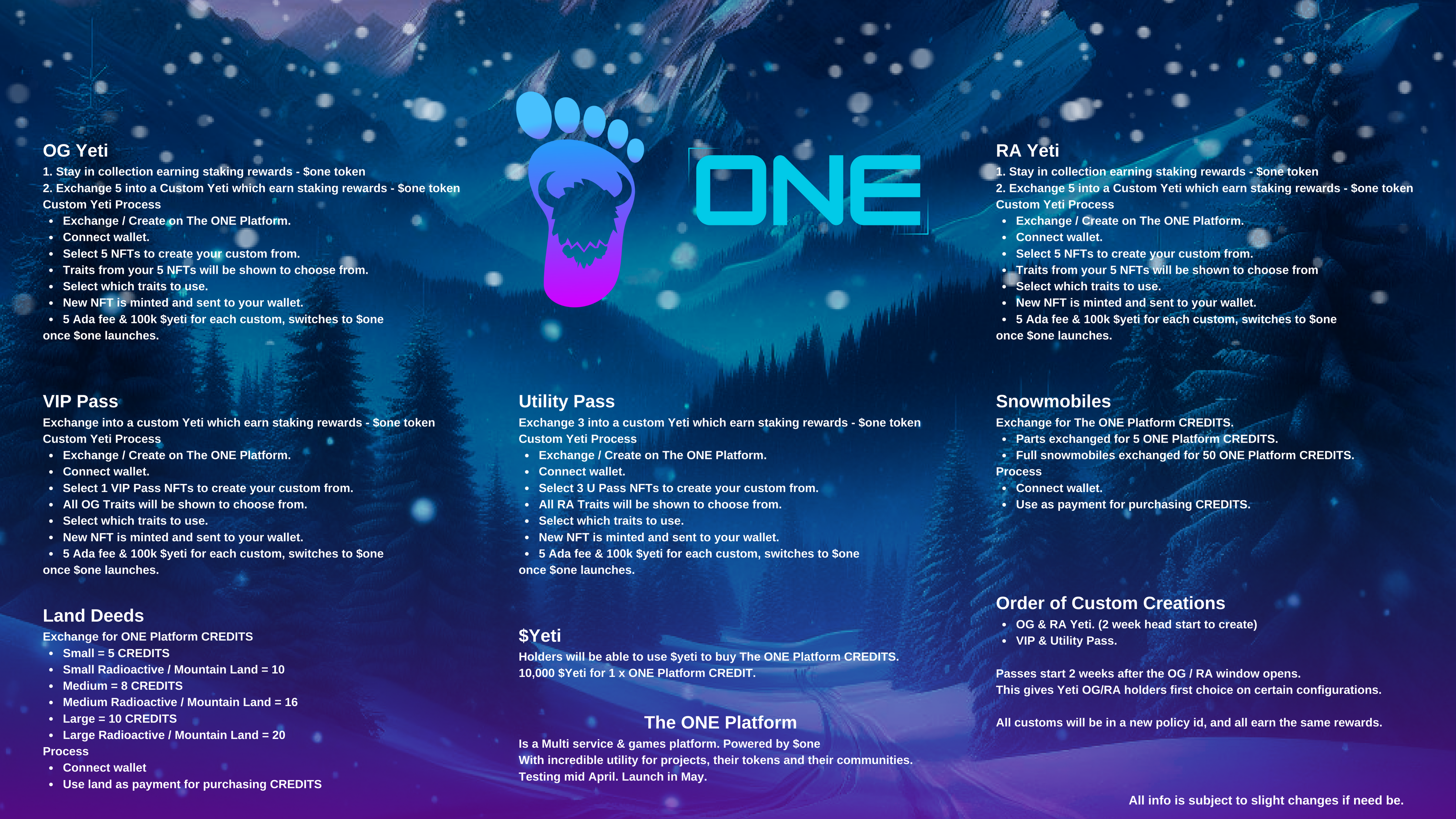 We are building a powerhouse of s games & services platform, which will be powered by $one. There will be a pre-sale in June. OG / RA & CUSTOMS will all earn staking rewards in $one.